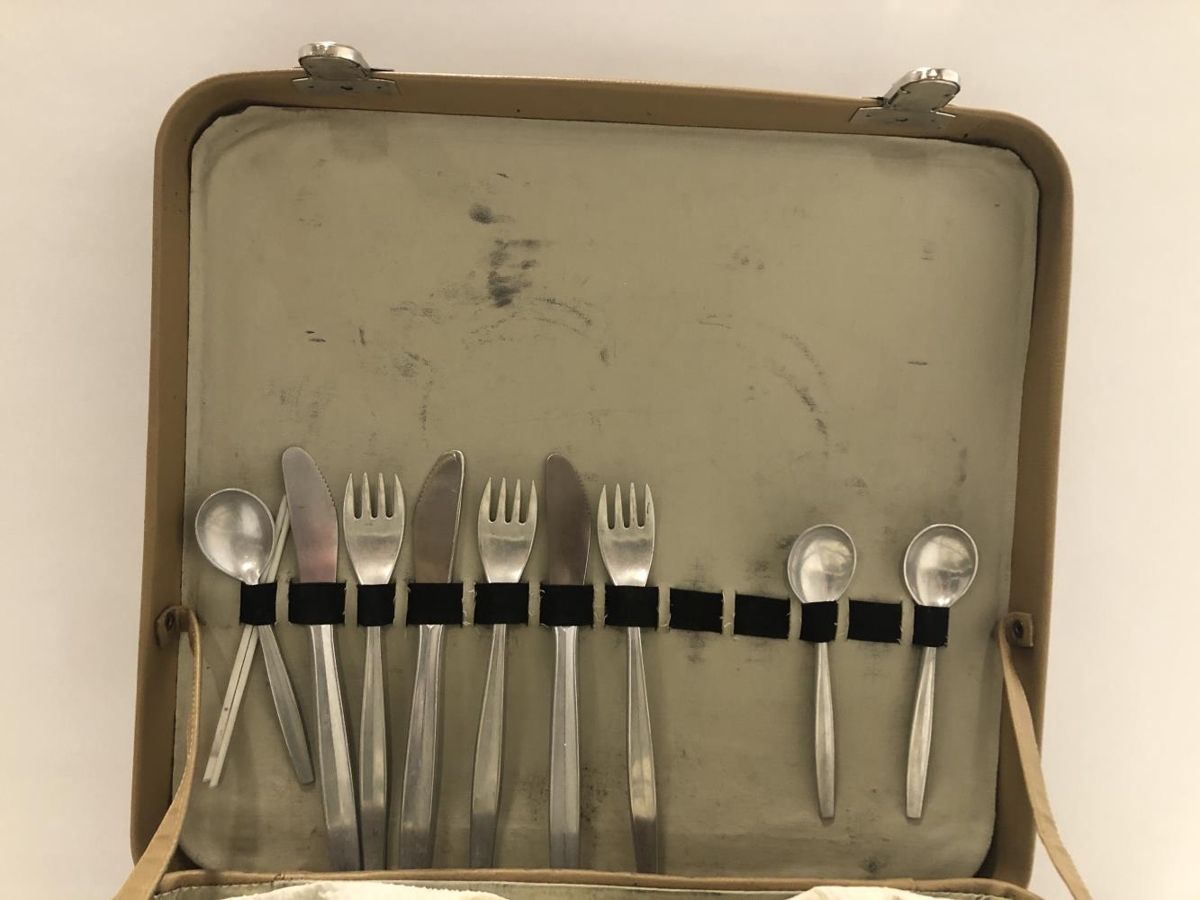 Lautartaska (pikniktaska) hjónanna Önnu Guðrúnar Magnúsdóttur (f. 17.12. 1927 - d. 1987) kennara og sr. Guðmundar Óla Ólafssonar (f. 5.12. 1927 - d. 2007) sóknarprests og prófasts í Skálholti. Kristín Sverrisdóttir (gefandi) gift Gunnari Bjarnasyni, Guðmundur Óli var föðurbróðir Gunnars. Í töskunni er Thermos kaffibrúsi, ílát undir mat (tvenns konar), bollar og diskar (kaffistell - plast), hnífapör, teskeiðar og rör.