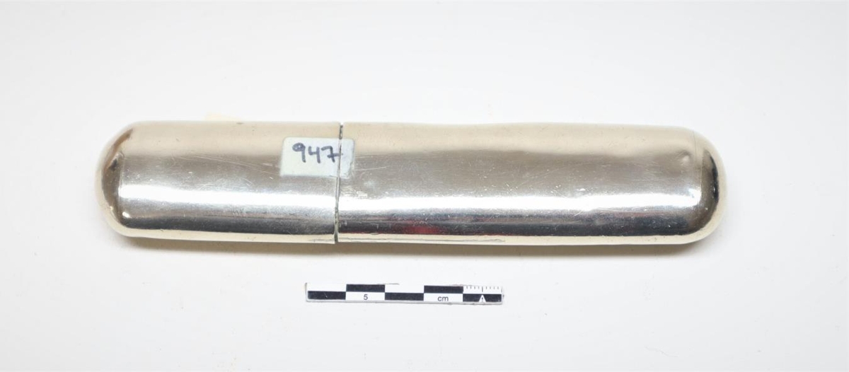 Gleraugnahúsið er sporöskjulagað og á aðra hlið þess er letrað með kopparskrift H. Líndal.