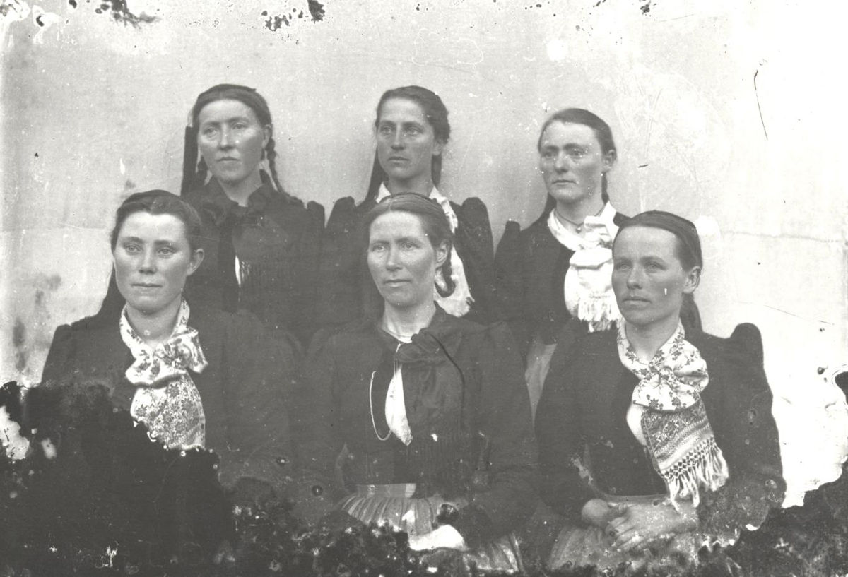 Hópur kvenna í Vík í Mýrdal. Neðri röð: Áslaug Skæringsdóttir í Hjörleifshöfða, Ragnhildur Gunnlaugsdóttir, Norður-Vík og Kristín Bjarnadóttir, Norður-Vík. Standandi: óþekkt, óþekkt og Bergþóra Sveinsdóttir frá Skammadal.
