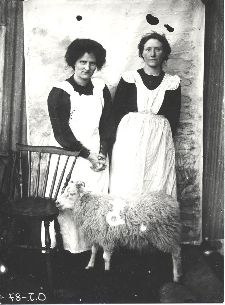 Auðbjörg Guðmundsdóttir og Arnþrúður Guðjónsdóttir, Suður-Hvoli í Mýrdal með heimalning.