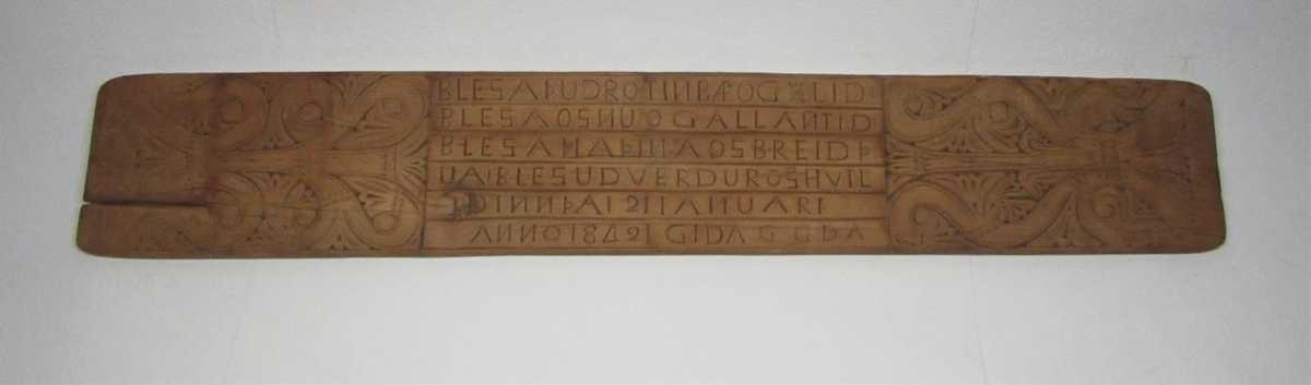 Rúmfjöl frá Ljúfustöðum. Gefið Sigríður Sigurðardóttir frá Stóra-Fjarðarhorni. Upphaflega í eigu Sigr. Jónsd.