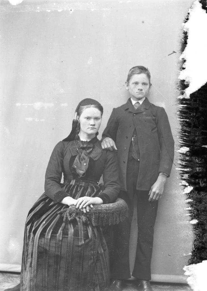 Guðmundur Rósenkarsson, bóndi og hreppstjóri í Æðey, átti skv. manntali 1890 9 börn á aldrinum 0-16 ára. Elsta barnið hans var stúlka að nafni Rannveig Guðmundsdóttir og er þetta líklega hún með bróður sínum, Rósenkar Guðmundssyni, sem var ári yngri.