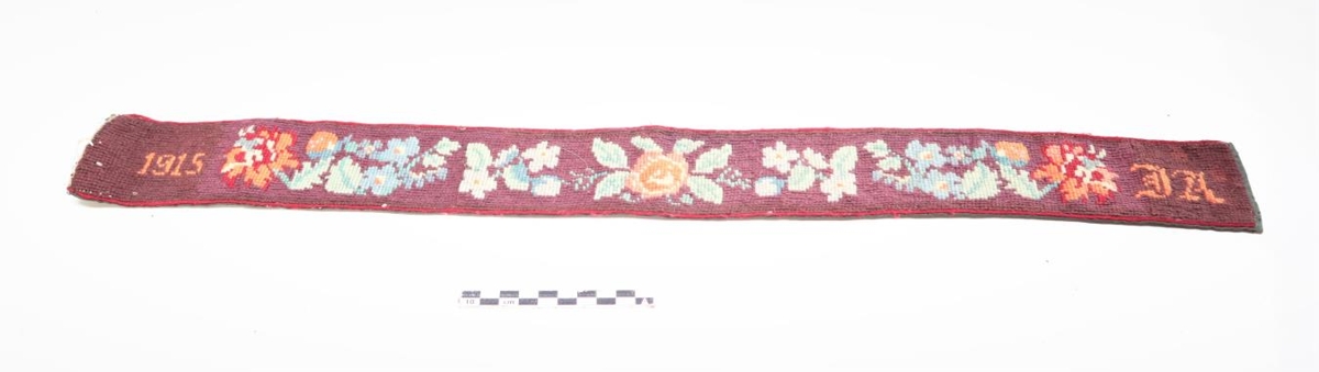 munstri. Á öðrum endanum er saumað í appelsínurauðum lit "1915"