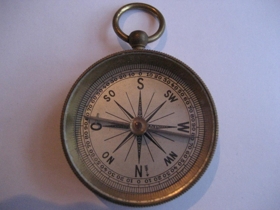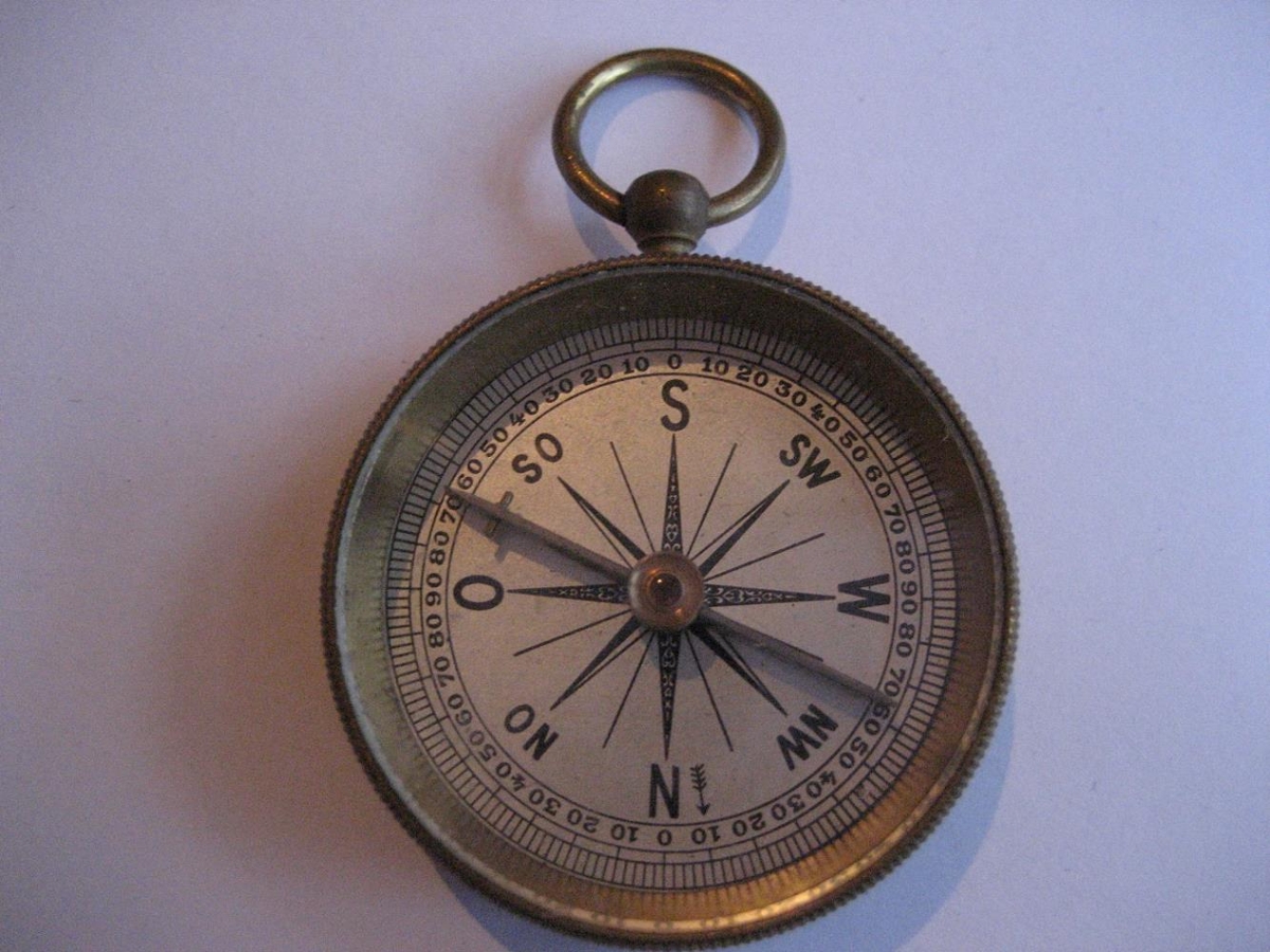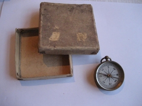 Áttaviti. Geymdur í lítilli pappaöskju. Eign Gunnars H. Gunnarssonar, bónda á Ljótsstöðum, föður Gunnars Gunnarssonar, rithöfundar.
