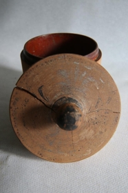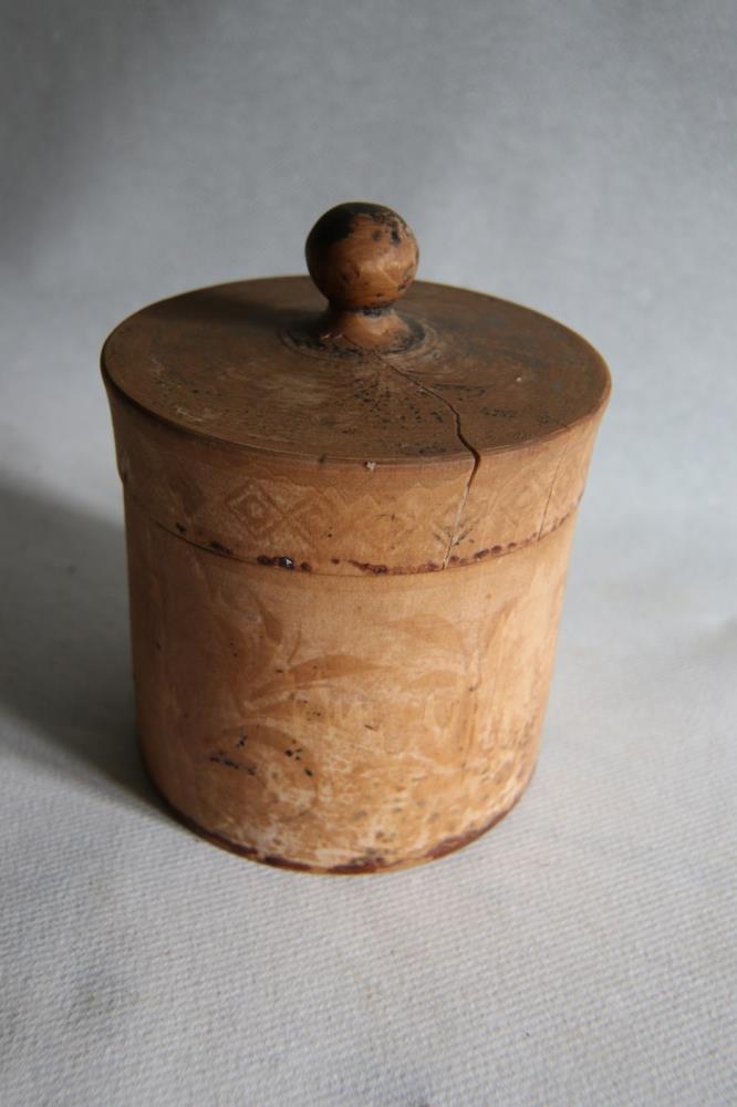 Tóbaksbaukur úr tré. Átti Ólafur Methúsalemsson, bóndi á Bustarfelli og síðar kaupfélagsstjóri á Vopnafirði. Á bauknum var litað flúr, e.k. laufa- eða blómamynstur, sem hefur upplitast í sól og er að mestu horfið.