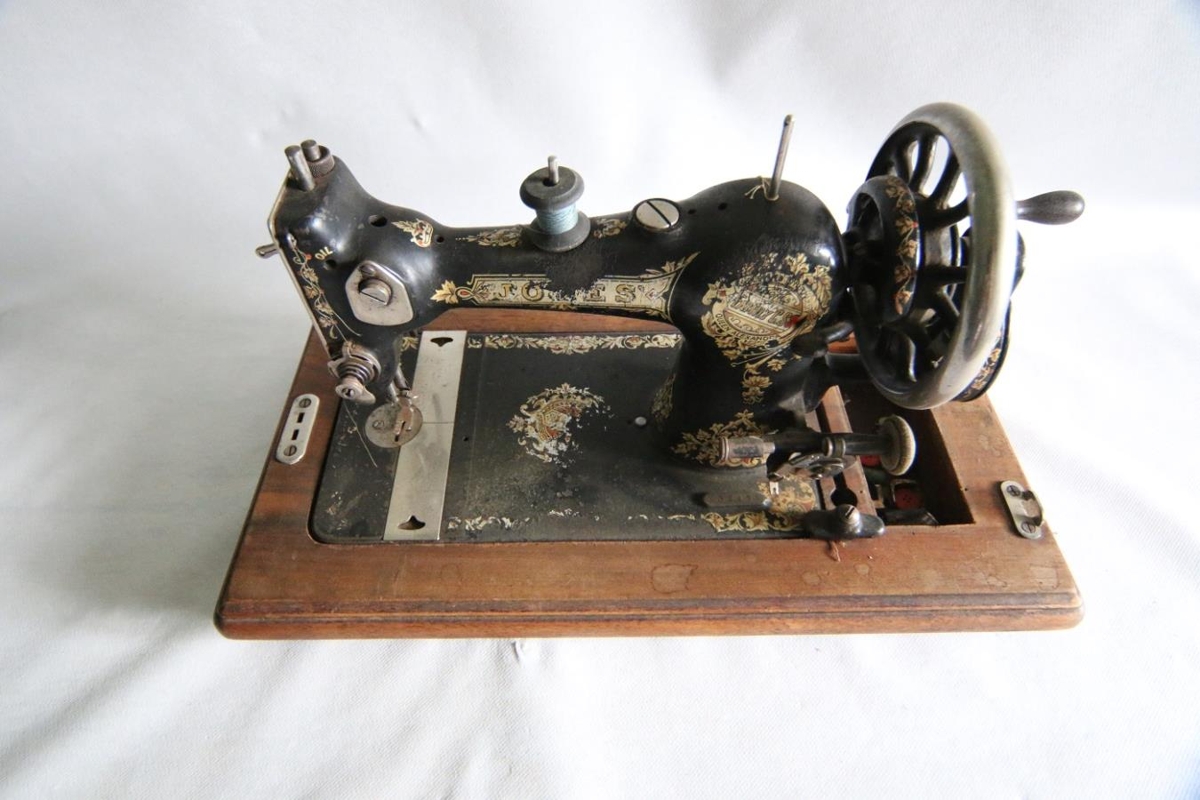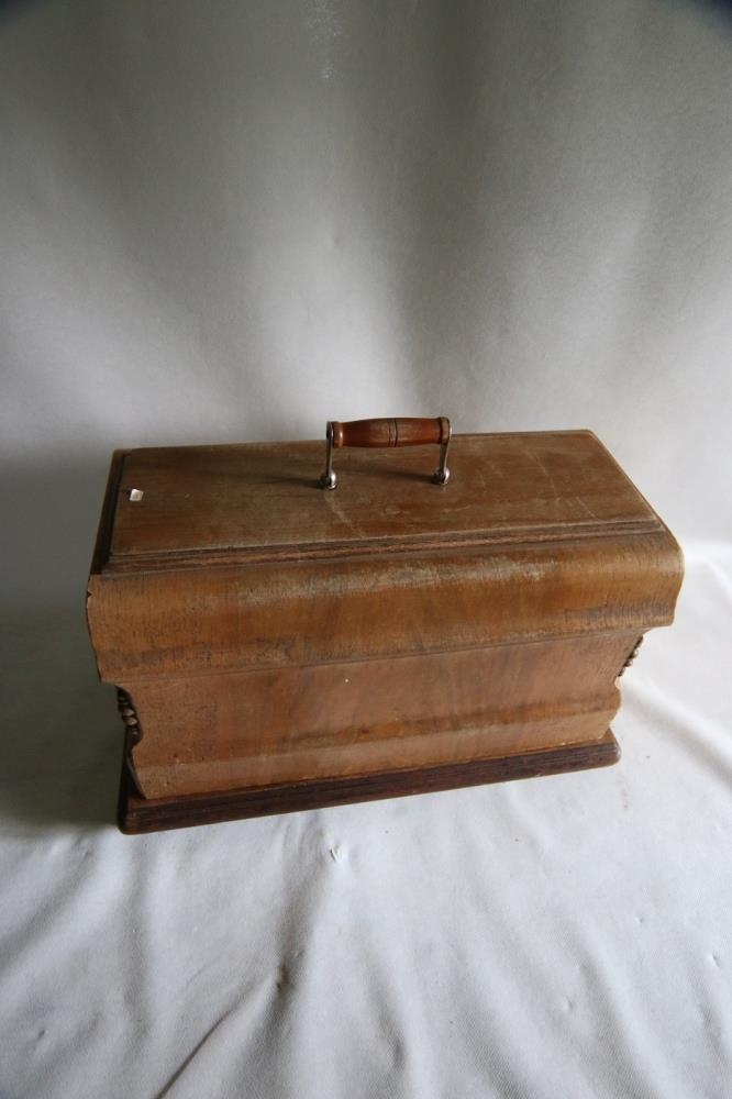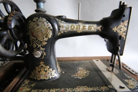 Saumavél með kassa, framleidd af enska fyrirtækinu Jones. Átti hana Oddný Salína Methúsalemsdóttir, Bustarfelli.