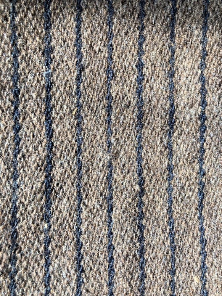 Sýnishorn af vormeldúk, sauðalitir, brúnt og svart. Stærð 57 x 30 cm. Afhent af Þórði Tómassyni. Fengið hjá Hallgrími Axelssyni í Þjóðólfshaga 1991 en óskráð.