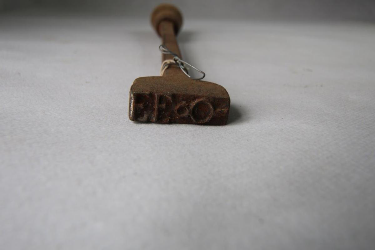 Átti Einar Einarsson, gullsmiður og bóndi á Bustarfelli. Hausinn ber fangamark hans auk tákns sem líkist tölustafnum 8 á hlið, með misstórum hringjum og legg neðan úr (myndin er spegluð).