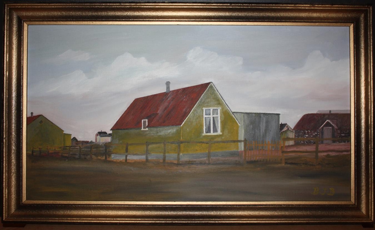 Myndefni: Melshús (Suðurgata 35) á Akranesi og er máluð af BJB. Eigandi varJúlíana Sigurðardóttir (1895-1976) frá Melshúsum en bjó í Borgarnesi lengst af ævi sinnar. Samskonar málverk af Melshúsum er til á safninu 2015-19. Málverkið er hugsanlega málað eftir ljósmynd.