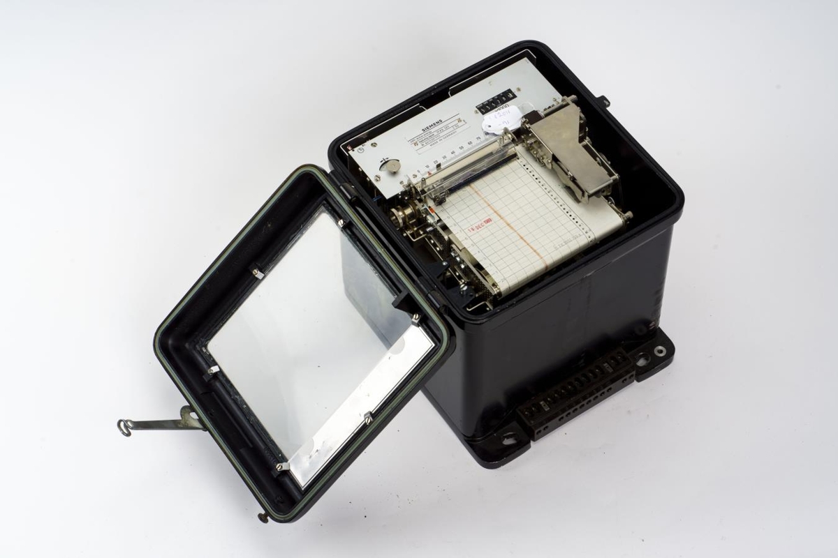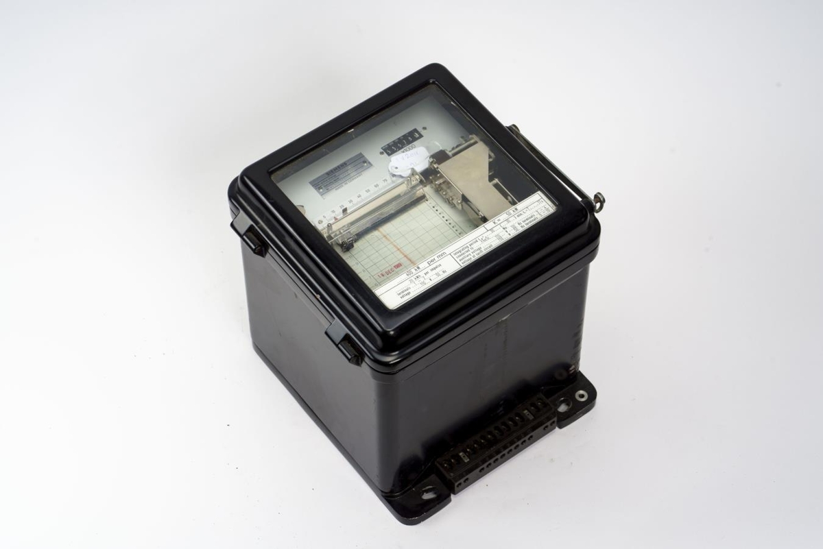 Frá stjórnstöð Bústaðarvegi. Mælir með prentara sem mælir KW. 400 Kw per mm.