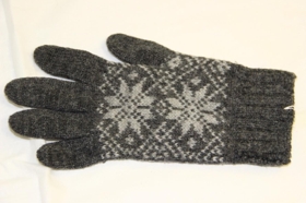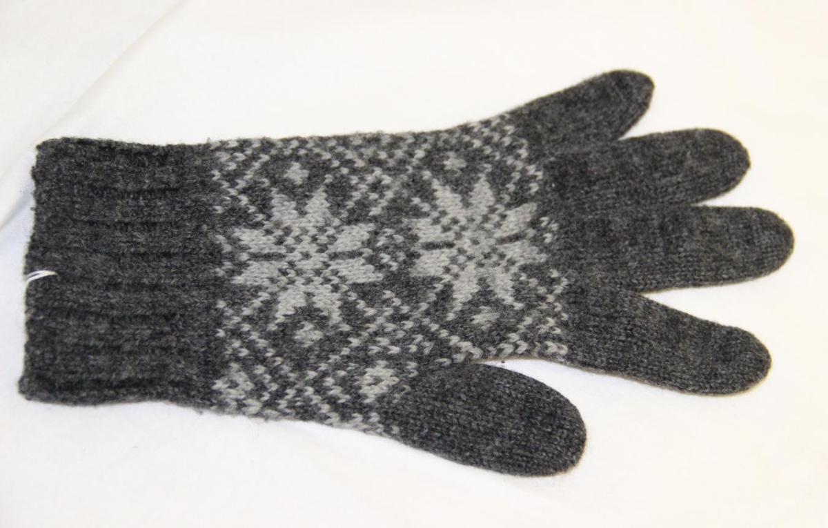 Vettlingurinn er dökkgrár með ljósgráu munstri. Stærð: Medium.