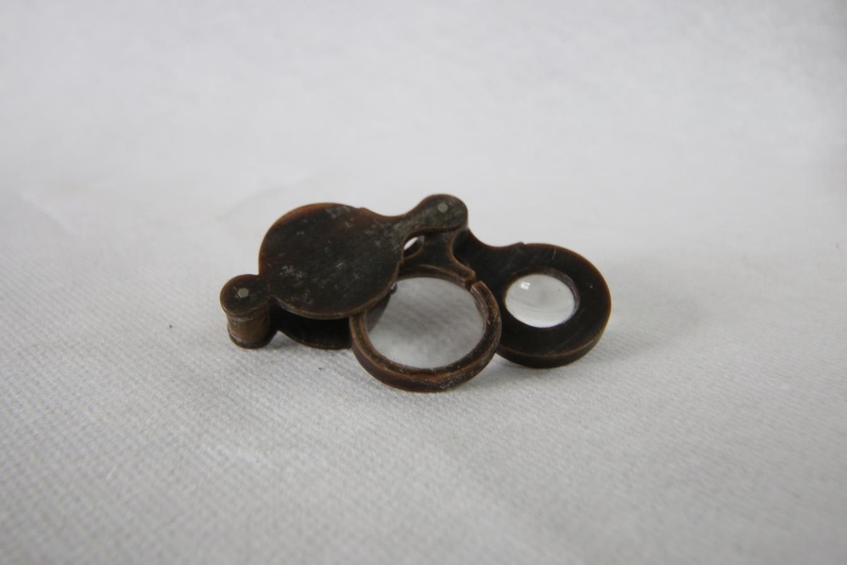 Lítið stækkunargler - kallað blómagler - með tveimur missterkum glerjum í hulstri sem virðist vera úr hvalskíðum eða horni. Glerin eru á ás og er hægt að fella þau inn í hulstrið, en jafnframt nota það sem handfang.