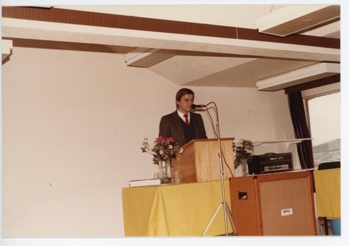 Guðjón Sigurðsson skólastjóri á fjörtíu ára afmælishátíð Laugaskóla.