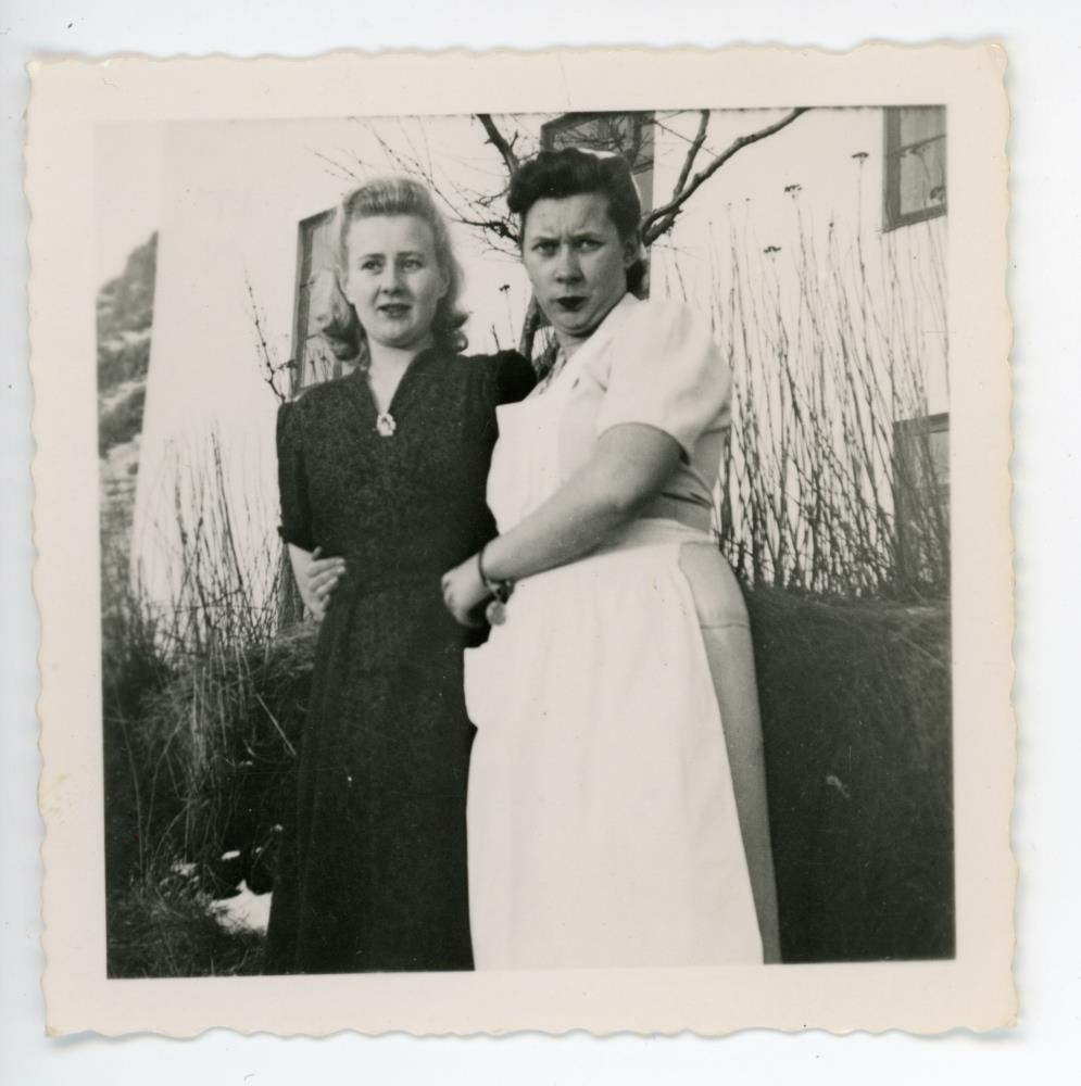 Frá vinstri. Anna Björnsdóttir vefnaðarkennari og Unnur Árnadóttir matreiðslukennari. Húsmæðraskólinn á Staðarfelli 1946-1947.