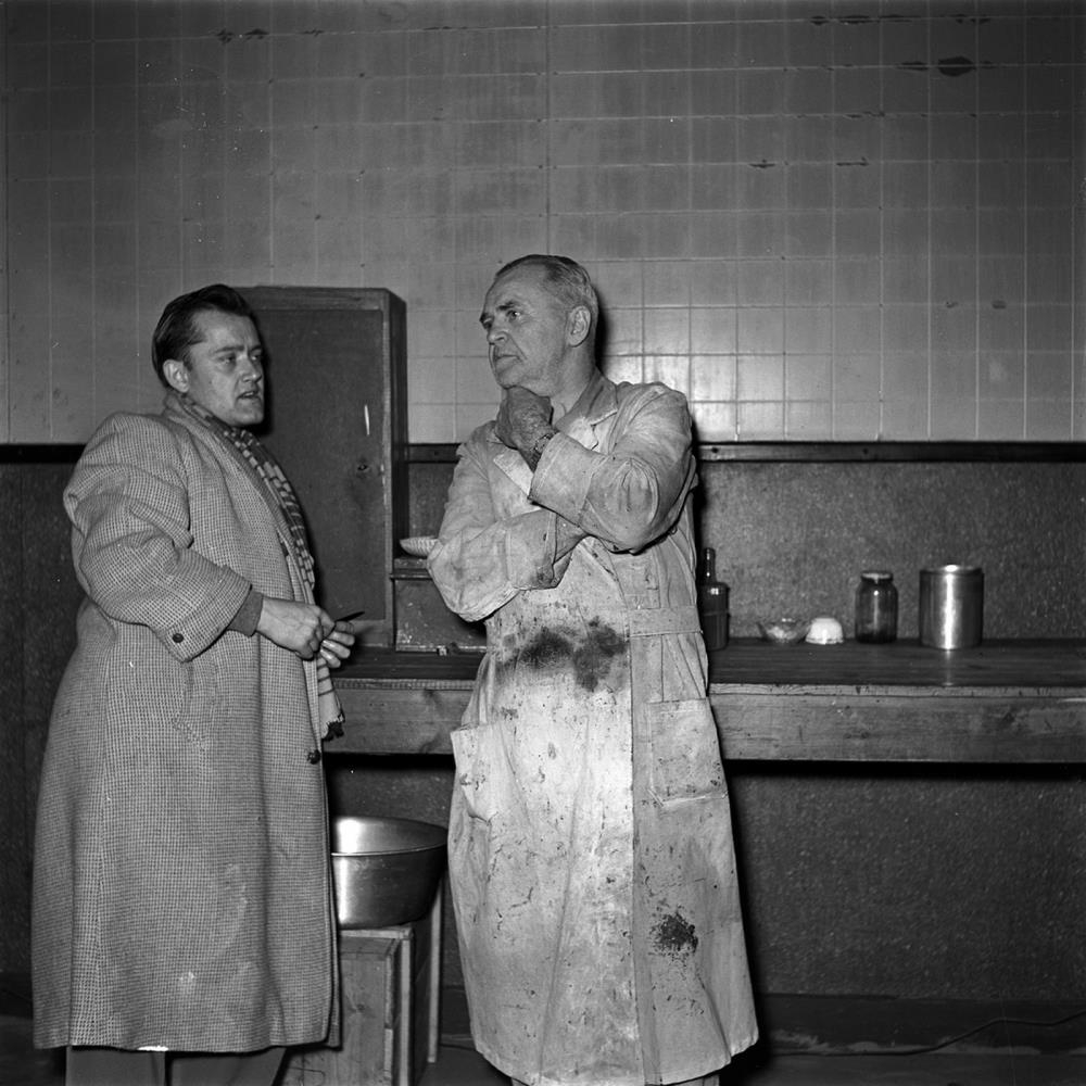 Rúgbrauðsgerðin. Ólafur Gaukur hljómlistamaður og blaðamaður á Tímanum að taka viðtal