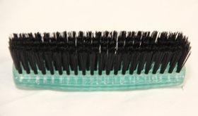 Hluturinn er handbursti. Hann er grænn að lit með svörtum nælonhárum.