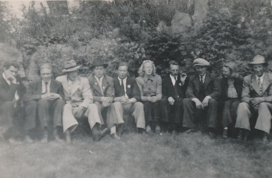 Mynd af nemendahóp frá Garðyrkjuskóla ríkisins við tilbúna steinhæð sem þau byggðu í Skallagrímsgarði 1945. F.v.: Bjarni Helgason, Hjalti Jakobsson, Baldur Gunnarsson, Theodór Halldórsson, Ólafur Þórðarson, Ragna Hermannsdóttir, Gísli Jóhannsson, Unnsteinn Ólafsson (skólastjóri), Viktoría Skúladóttir og Ágúst Eiríksson.