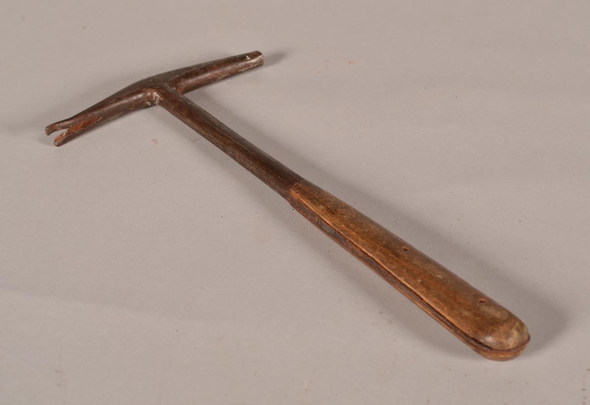 Skósmíðahamar með viðarskafti og járnhaus.