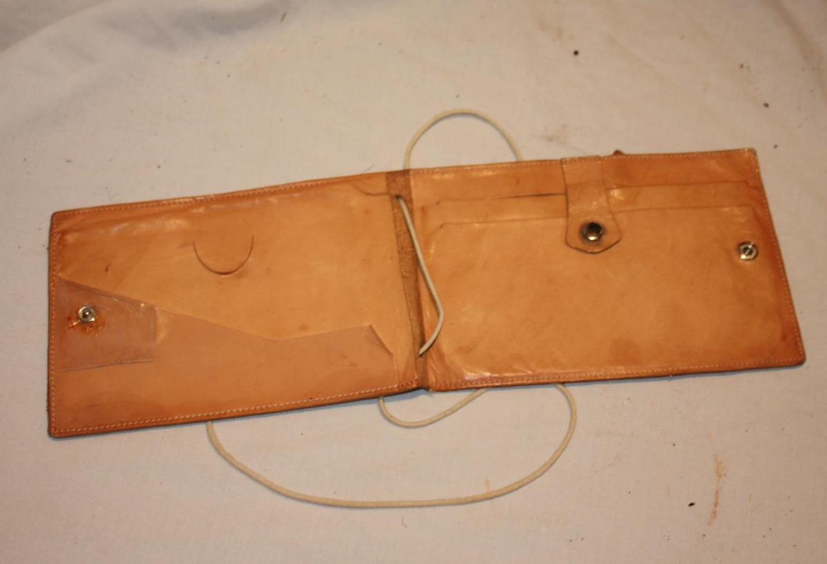 Innanklæðaveski úr ljósu leðri og merkt S (Samvinnubankinn).