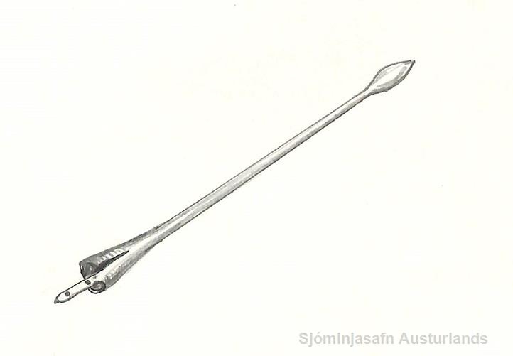 Járnstingur með hulsu fyrir tréskaft sem vantar. Hann er talinn tengjast hvalveiðum, líklega hrefnuveiðum, sem voru stundaðar á Reyðarfirði uppúr 1930. Gefandi fann hlutinn í gömlu dóti.
