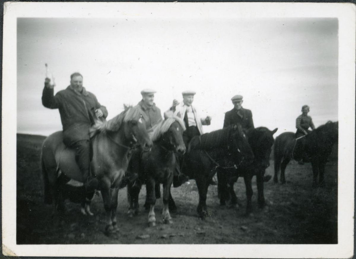 Frá vinstri. Skúli Jóhannesson bóndi á Dönustöðum, ?, Árni Tómasson frá Lambastöðum, ? og ?.
