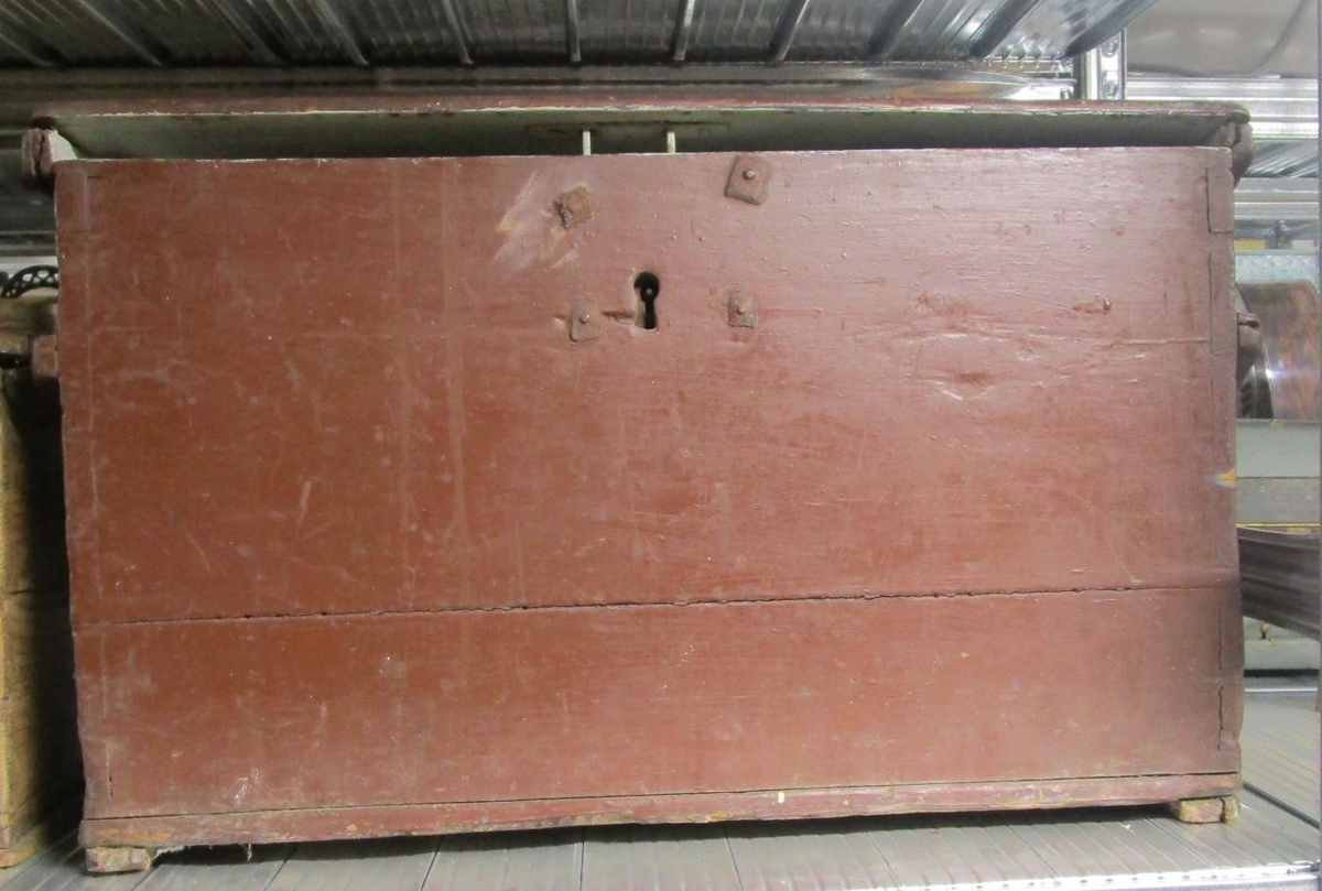 Sjóferðakista Ágústar Pálssonar, sem var faðir gefanda. Brúnmáluð.