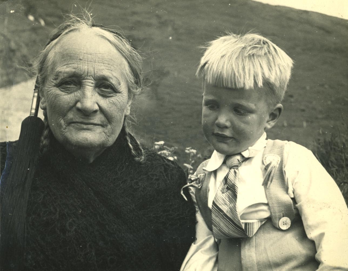 Drengurin er líklega Sigurður Trausti Þórðarson með ömmu sinni. Fæddur 1.8.1947.