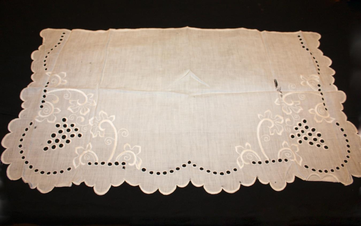 Borðdúkar og fleira. Allir munir, sem hér eru skráðir 1986-01 til 1986-90 eru úr dánarbúi Kristínar Sigtryggsdóttur, Bergþórugötu 29, Rvík. Kristín lagði það fyrir að þessir hlutir gengu til Byggðasafnsins að Görðum að henni látinni: Munirnir voru afhentir safninu vorið 1981 af Alexíusi Lútherssyni, systursyni Kristínar. Eftirtaliðr færist á fyrsta spjaldskráarblað: