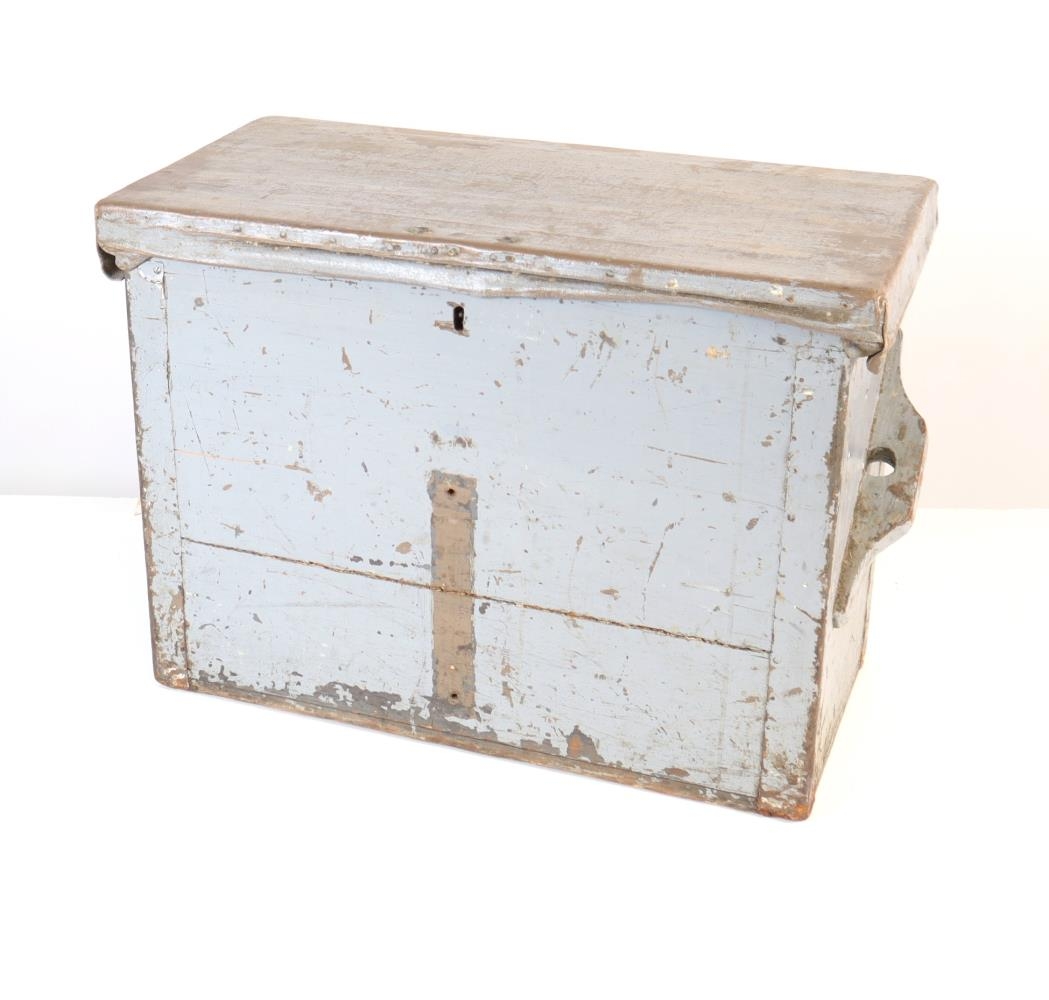 Kista, koffort, reiðkoffort úr tré, grámáluð. Með festingum á hliðum. Gæti verið póstkista. Var í eigu Eggerts Briem, hæstaréttardómara en kistan ásamt öðrum munum voru á háalofti að Tjarnargötu 28, Rvk. áratugum saman.