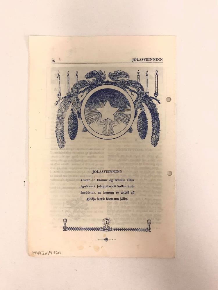 Jólablað gefið út af Barnaskóla Akureyrar árið 1969. Blaðið heitir - Jólasveinn - og inniheldur stuttar sögur eftir nemendur 9-12 ára. Aftan á blaðinu stendur : Jólasveinninn kostar 35 krónur og rennur allur ágóðinn í Jólagjafasjóð Soffíu Stefánsdóttur, en honum er ætlað að gleðja fátæk börn um jólin.