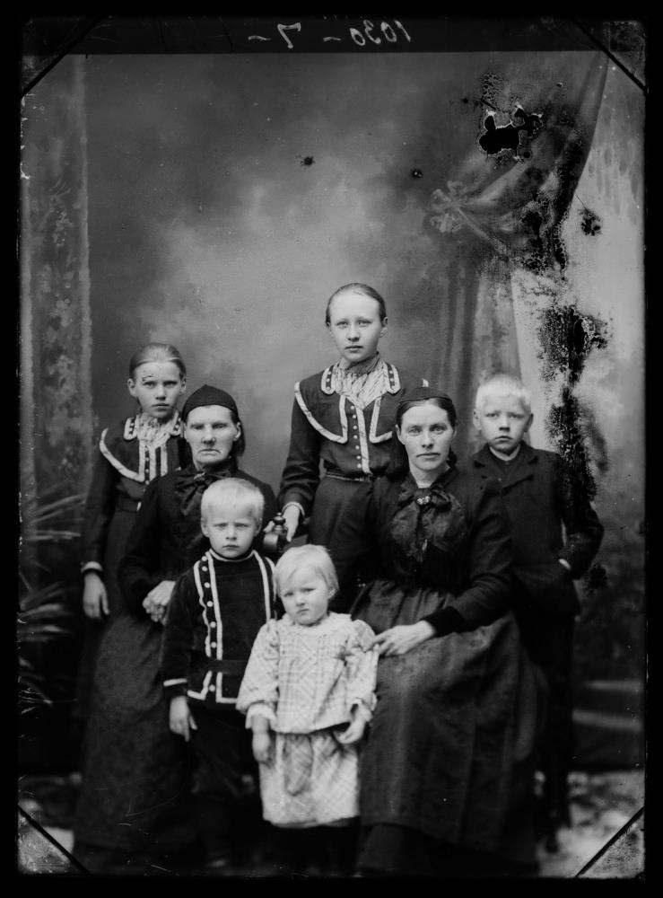 „Á myndinni eru fimm af börnum presthjónanna á Hvammi, síðar Hruna. Foreldrar þeirra voru Sigríður Jóhannesdóttir (1864-1947) og Kjartan Júlíus Helgason (1865-1931). Börnin á myndinni: (ekki í röð, en röðin er augljós miðað við aldur) Unnur Kjartansdóttir (1892-1972), Elín Kjartansdóttir (1894-1971), Helgi Kjartansson (1895-1977), Jóhannes Kjartansson (1900-1928), Guðrún Kjartansdóttir (1902-1931). Með börnunum eru hjú presthjónanna, þær mæðgur Halldóra Rögnvaldsdóttir (1858-1934) og Halldóra Guðmundsdóttir (1814-1909).“ (SBBP 2023)