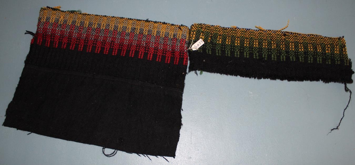Vefnaðarsýnishorn ofið af móður gefanda, Sigurlínu Stefánsdóttur frá Bjólu, síðar húsfreyju á Ægisíðu á vefnaðarnámskeiði hjá frú Sigrúnu Blöndal á Efra-Hvoli í Hvolhreppi. Sérfræðing í vefnaði þarf til að greina það. Þetta eru tvö stykki, 27,5 x 22 cm.