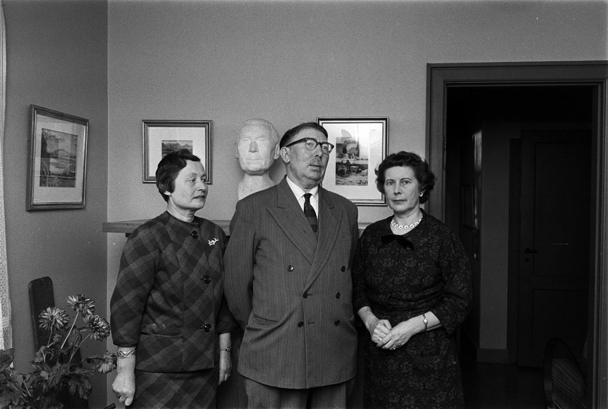 Karlmaður og tvær konur. Guðlaug t.v., Jón og Bjarnveig t.h.