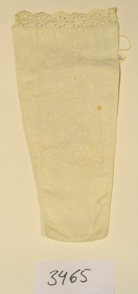 Peysubrjóst Sesselju Guðmundsdóttur í Suður-Fíflholtshjáleigu (Hátúni). Útsaumaðar blúndur. Vandað og gott verk.