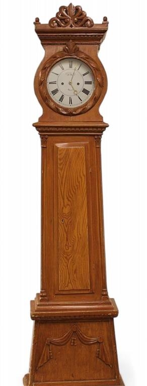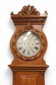 Bornholmklukka Með pendúl. Borgundarhólmsklukka. Í oðruðum beykikassa. Áletrun á skífu: H. Dam. Rönne.