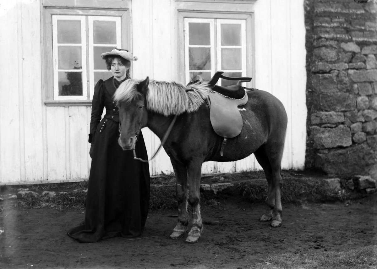 Þorbjörg Jónsdóttir f.16.4.1891, með hest, Arnarvatni