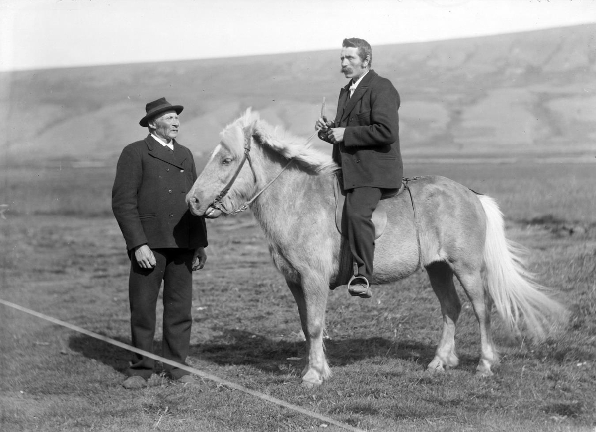 Páll Jónsson f.13.10.1860 ríður "Lýsing", Albert Vigfússon f.16.2.1849, Stóruvöllum