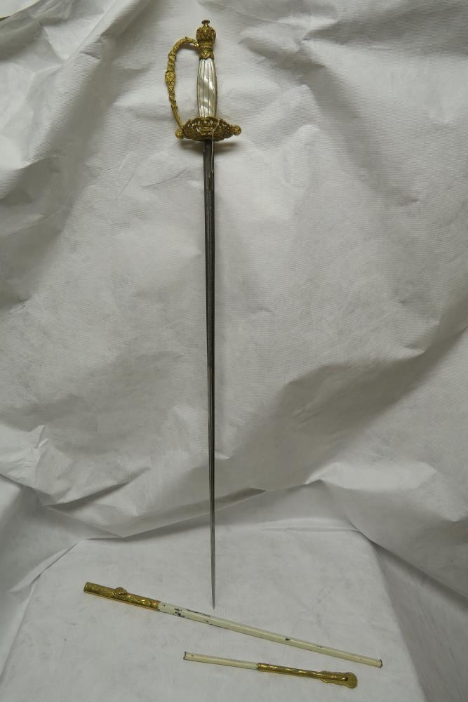Konsúlssverð. Í ljósum slíðrum, með gullreknum hjöltum. Öll lengd 105 sm, að hjöltum 93 sm.