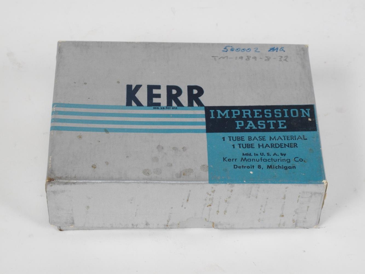 „Kerr mátpasti í túbum. USA.“ „Margrét Guðmundsdóttir tannsmiður. Lærði tannsmíðar hjá Halli L. Hallssyni 1939-1942. Framhaldsnám í Danmörku og Svíþjóð. Rak svo eigin verkstæði í Rvík. Fædd 1904. dáin 1982.“ Skv. aðfangabók minjanefndar Tannlæknafélags Íslands.
