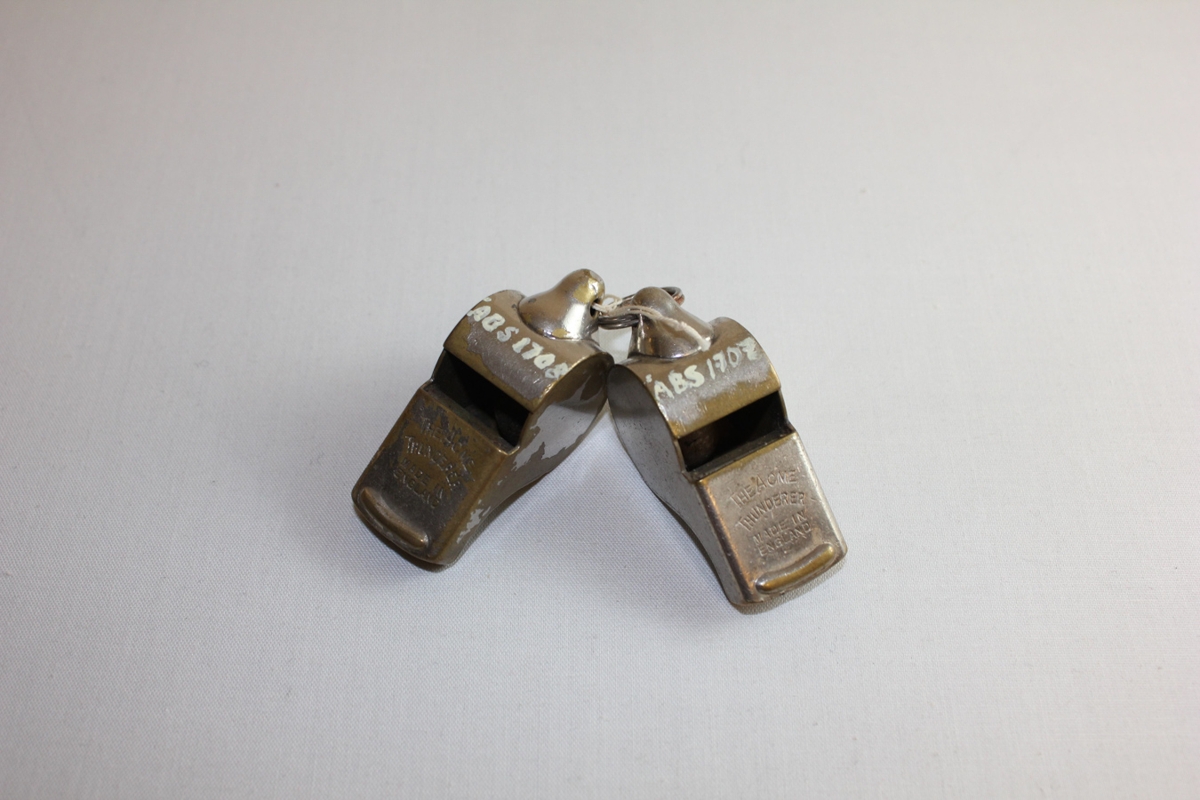 ÁBS 1707 - 8: 2 enskar dómaraflautur: The Achme Thunderer. Áletrun: The Achme Thunderer.
