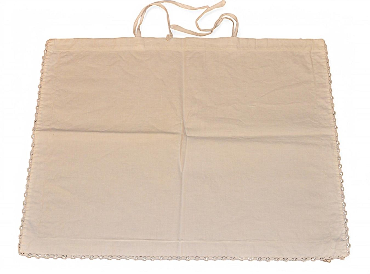 Lítið koddaver utan um svæfil. Hólmfríður saumaði koddaverið í Handavinnudeild Handíða- og myndlistaskólans 1949-1951. Litlir koddar voru kallaðir svæflar (svæfill). Þeir voru yfirleitt notaðir til að leggja ofan á stærri kodda, nema hjá ungabörnum.