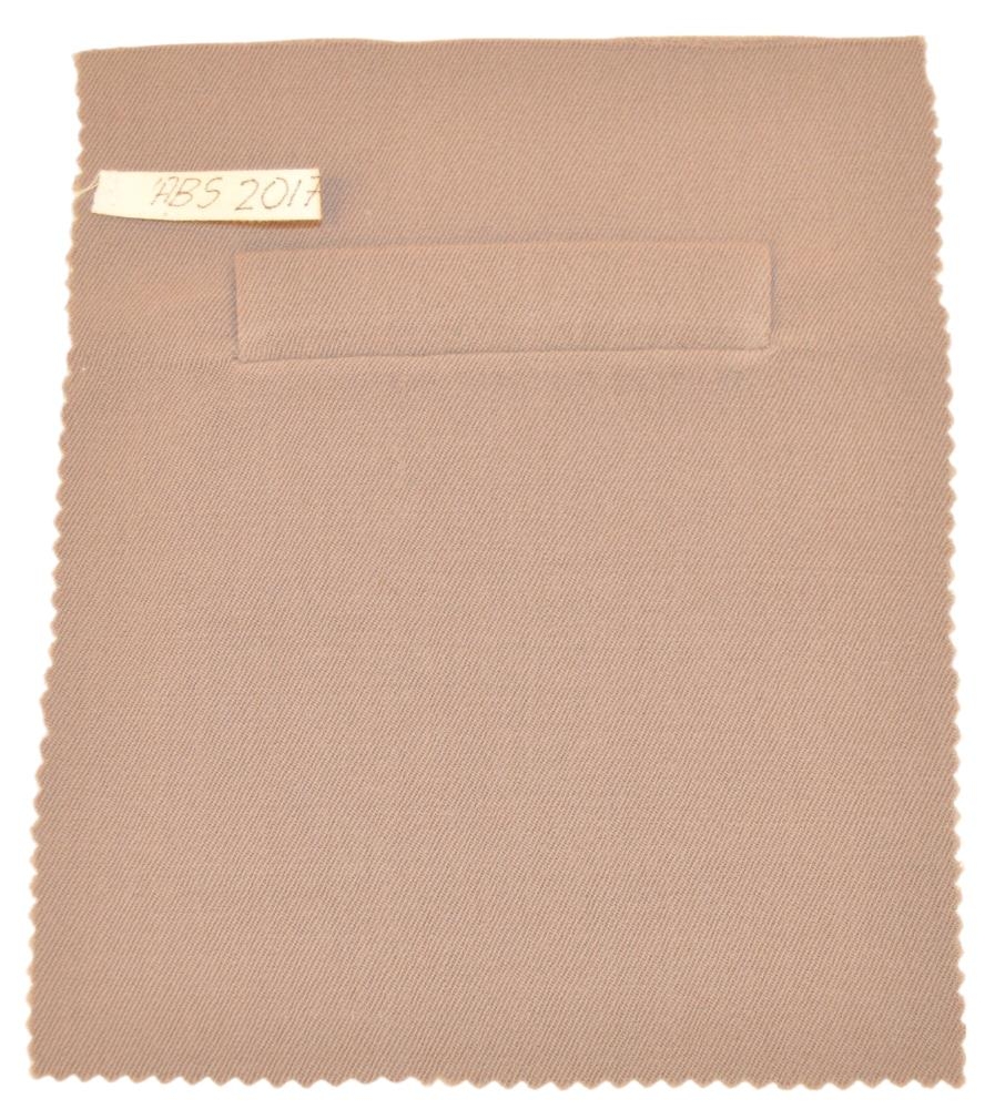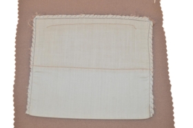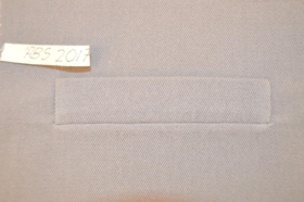 Saumaprufa. Vélsaumstækni. Markmiðið var að kenna undirstöðuatriði í fatasaumi. Vasi með lista (vestisvasi). Vasabrún undir listanum er brydduð. Vasafóðrið er varpað (saumað) niður í höndum.