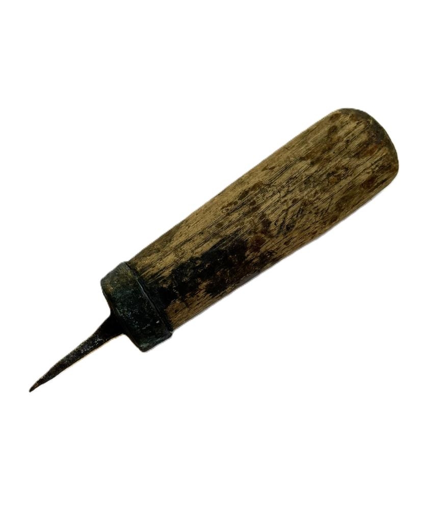 Alur, tréskeftur og með eirhólki. Lengd skafts 11 cm, full lengd 14,5 cm. Gripir frá Hátúni, áður Suður-Fíflholtshjáleigu í Vestur-Landeyjum. Gefnir af Einari Guðmundssyni bónda þar, komu 9.10. 1977.