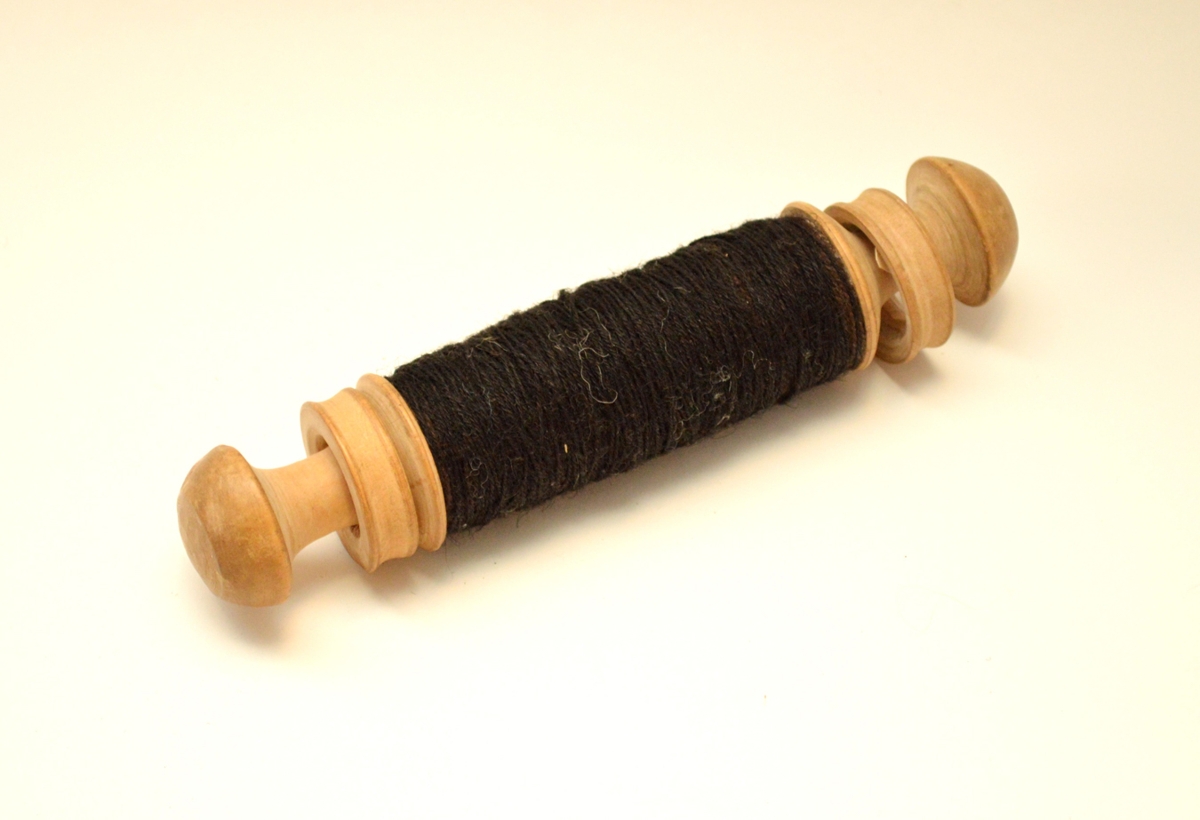 Þráðarkefli með svörtum togþræði, tvinnuðum. Keflið er rennt úr birki, með hringjum á endum. Mun unnið af Geir Gislasyni í Gerðum. Þráðinn vann móðir hans, Þórunn Pálsdóttir frá Eystra-Fíflholti. Þráðarkefli af þessari gerð voru ekki óþekkt.