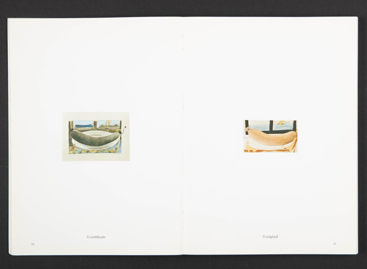 Prentað í lit á hvítan pappír. límt. texti á ensku, þýsku, spænsku. Litljósmyndir af verkum sem Dieter Roth og Richard Hamilton hafa unnið saman.