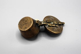 Hluti af gömlu koparlóði frá metaskálum.