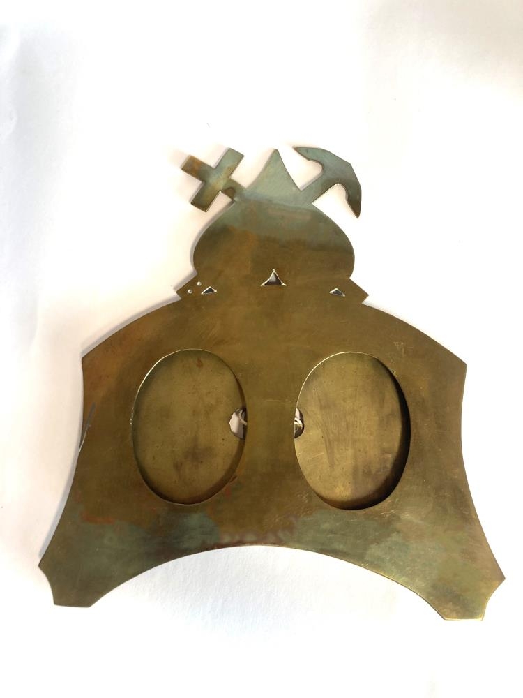 Koparrammi, smíðaður af Sighvati Einarssyni. Hæð um 22 cm, breidd 2o cm.Gerður fyrir tvær myndir. Efst táknskreyting: Hjarta, kross, akkeri.