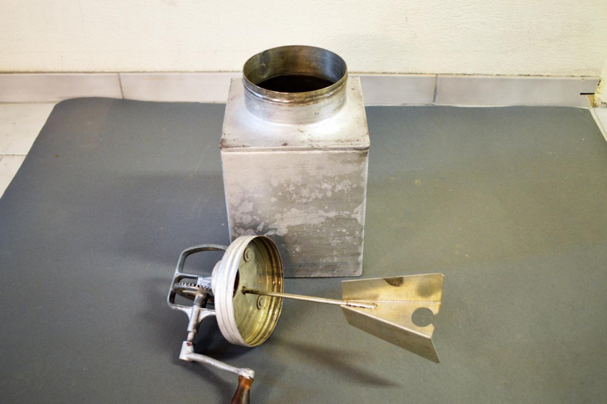 Málmstrokkur, ferkantaður, handsnúinn, The Blow. Hæð rjómahylkis 22,5 cm. Var mjög ryðtekinn er hann kom til safnsins. Nú bronsaður af safnstjóra. Frá Jóni Tómassyni og Guðmundi Tómassyni, bræðrum frá Uppsölum í Hvolhreppi, nú á Kirkjuhvoli í Hvolsvelli.