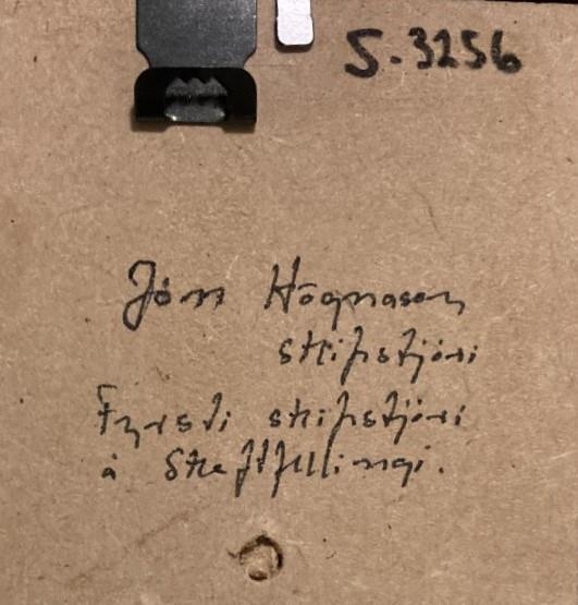 Ljósmynd í ramma af Jóni Högnasyni skipstjóra, sem var fyrsti skipstjóri á Skaftfellingi.