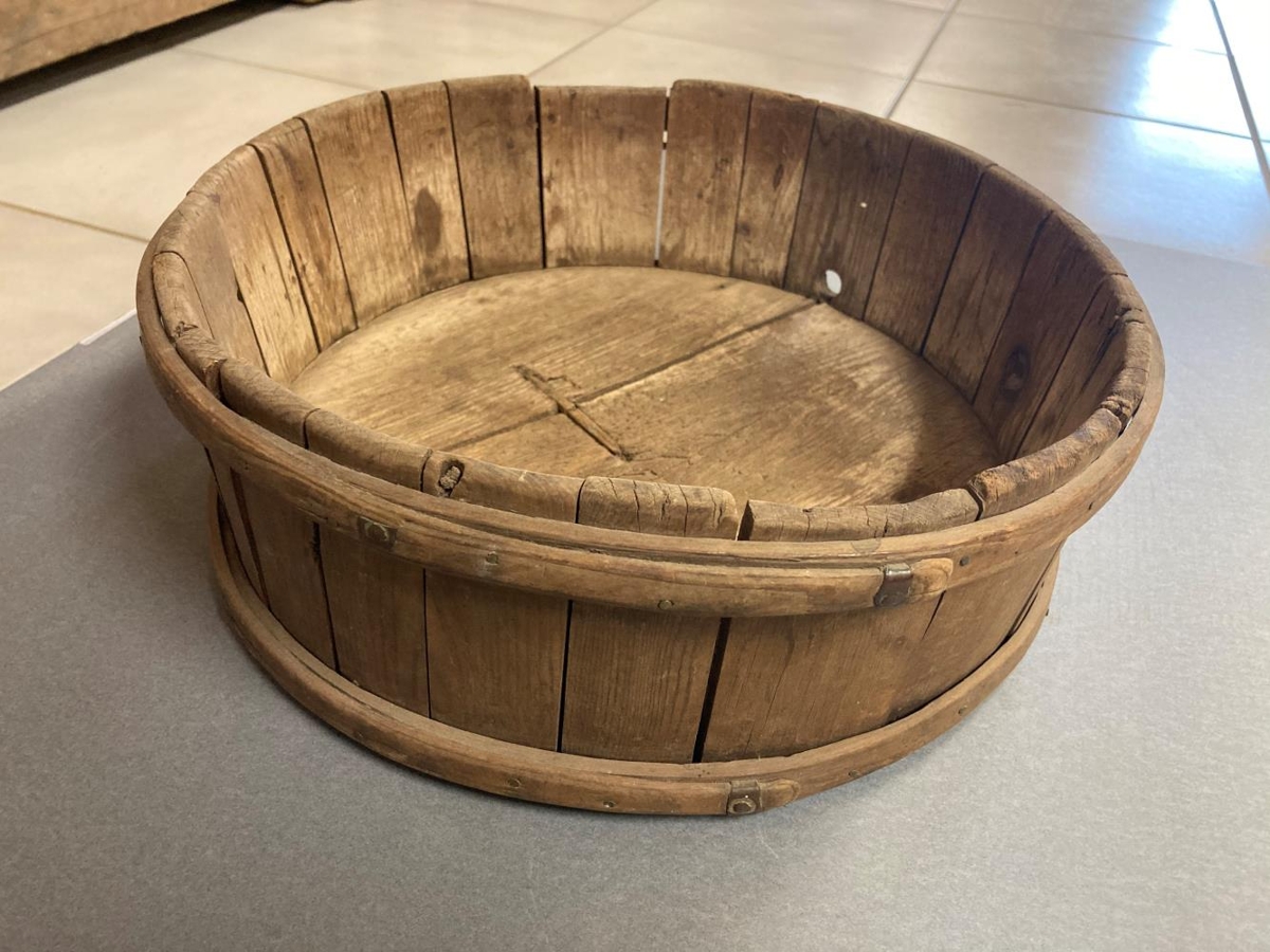 Mjólkurbytta, trégirt. Innanmál við efri brún er 30,7 cm.